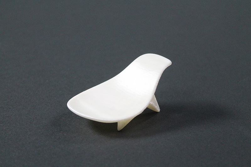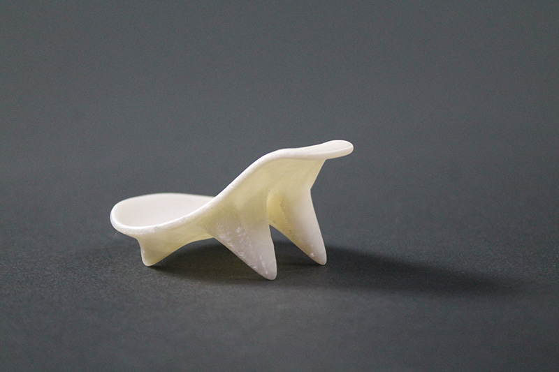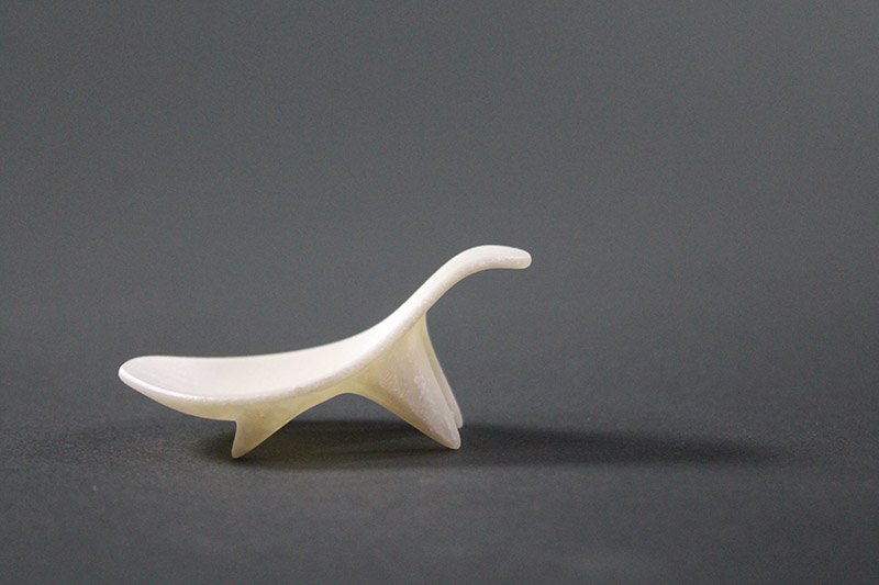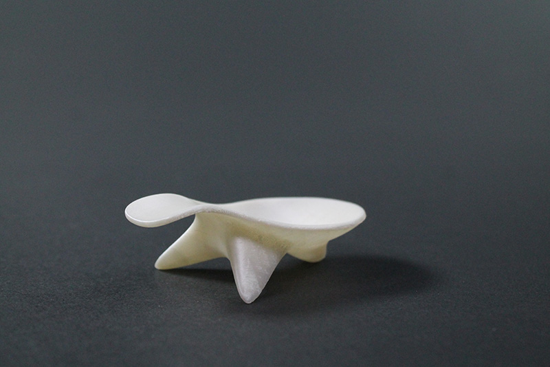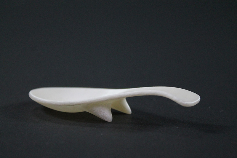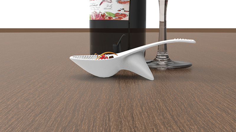 Beluga is a sinuous and dynamic gourmet spoon resting on 3 legs. This gourmet spoon elevates the food from the table's surface, limiting a person's contact from table to mouth which reduces involuntary contamination. The triangular positioned legs add stabilization to the spoon.