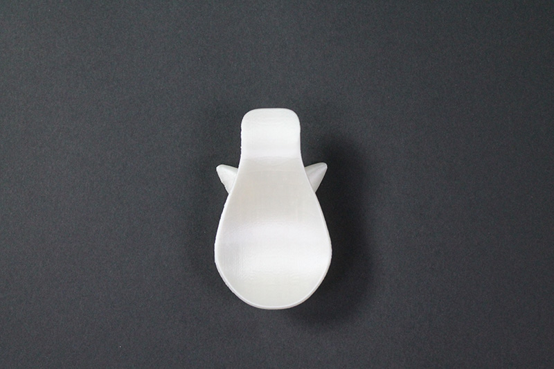Beluga's handle and mouthpiece are textured to enhance the user's haptic sensory experience during the food sampling. The dots creating this textured surface are smooth and evenly spaced, designed to be easily cleaned.