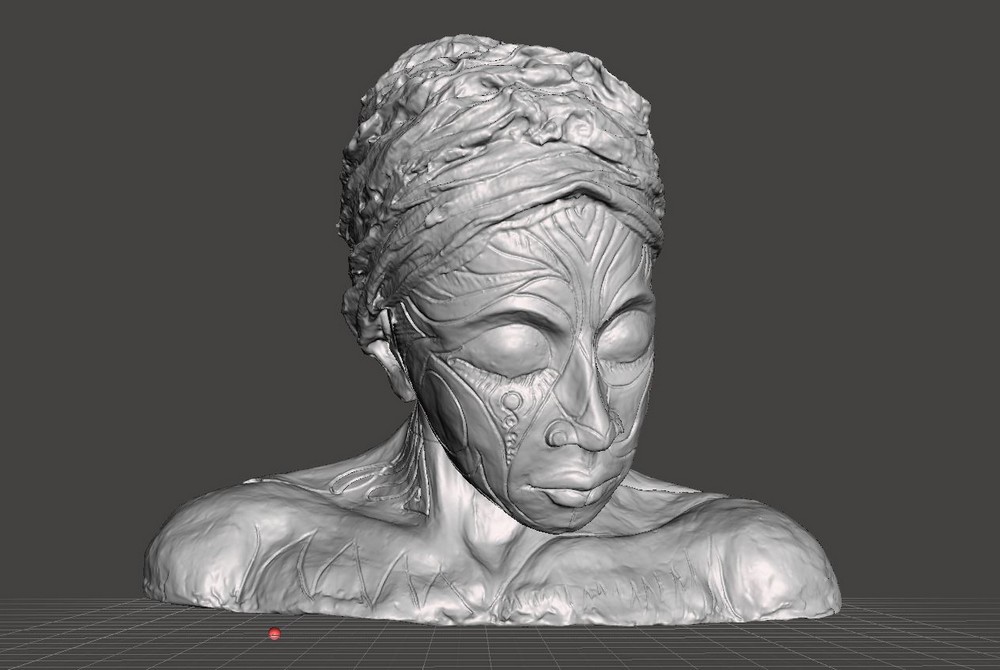 Die digitale Datei der Keramikbüste wurde mit einem Artec Spider 3D-Scanner erstellt und mit dem 3D-Programm Meshmixer für einen 3D-Druck bearbeitet und verfeinert.