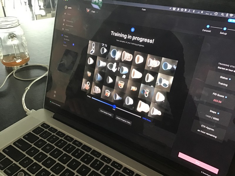 Unser Konzept stellt sich als ein sozialer Dienst dar. Durch die Verwendung eines künstlichen neuronalen Netzes, das durch zahlreiche Bilder von Tassen lernt, entstehen hunderte einzigartige digitale Tassen. Eine Person kann zwischen diesen digitalen Tassen seinen Favoriten Wählen und 3D drucken lassen. Unsere Idee war es, das Pulver aus recycelten Tassen als Zusatz zu Rohmaterial wiederzuverwerten.