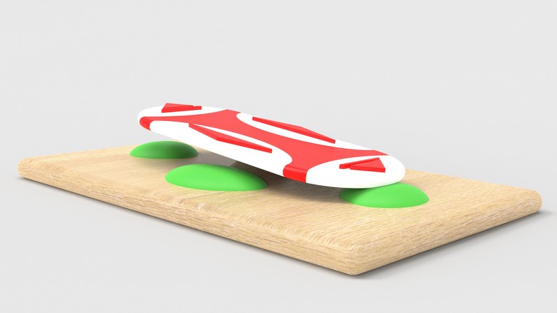 Eine Halbkugel unterhalb des Mini-Skateboards ermöglicht dem Benutzer sich freier im Spiel zu bewegen. Die Pfeile deuten dem Benutzer an in welche Richtung er das Mini-Skateboard steuern kann.