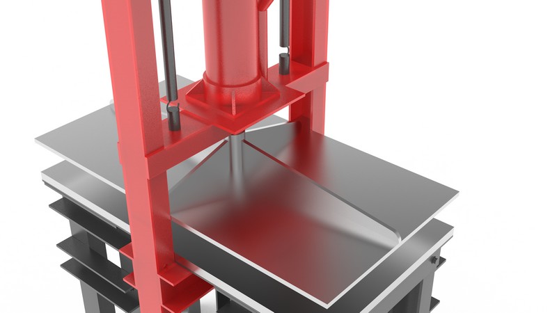 Der Schredder besteht vollständig aus Einzelteilen, die Heizpresse verwendet eine aus dem Markt angefertigte Garagenpresse.