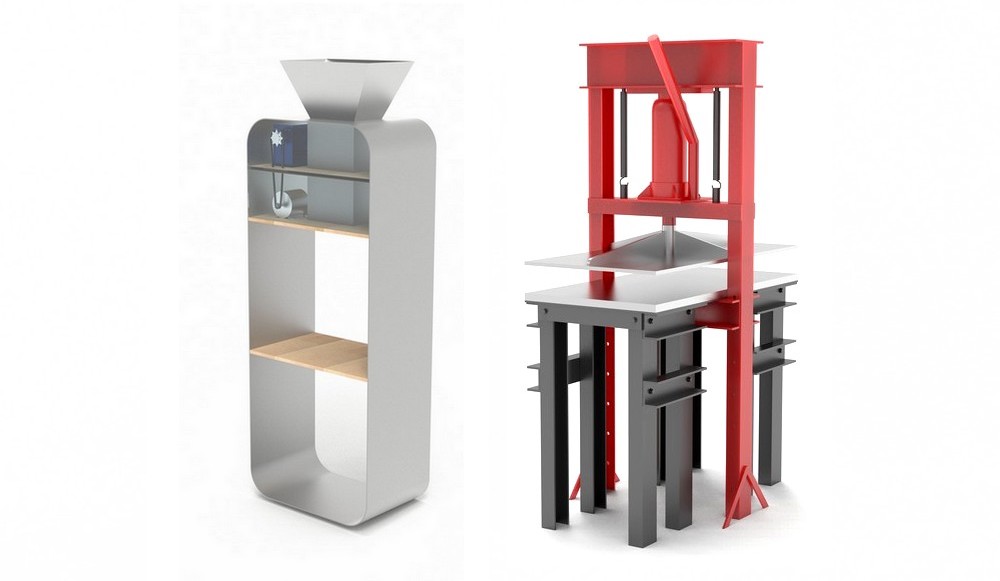 Die Verwendung und Ästhetik dieser Kit Maschinen wurde eigens für Bildungszwecke hergestellt. Die Maschinen gewähren einen guten Überblick der Mechanismen und der Prozedur der Verarbeitung des Restmaterials.