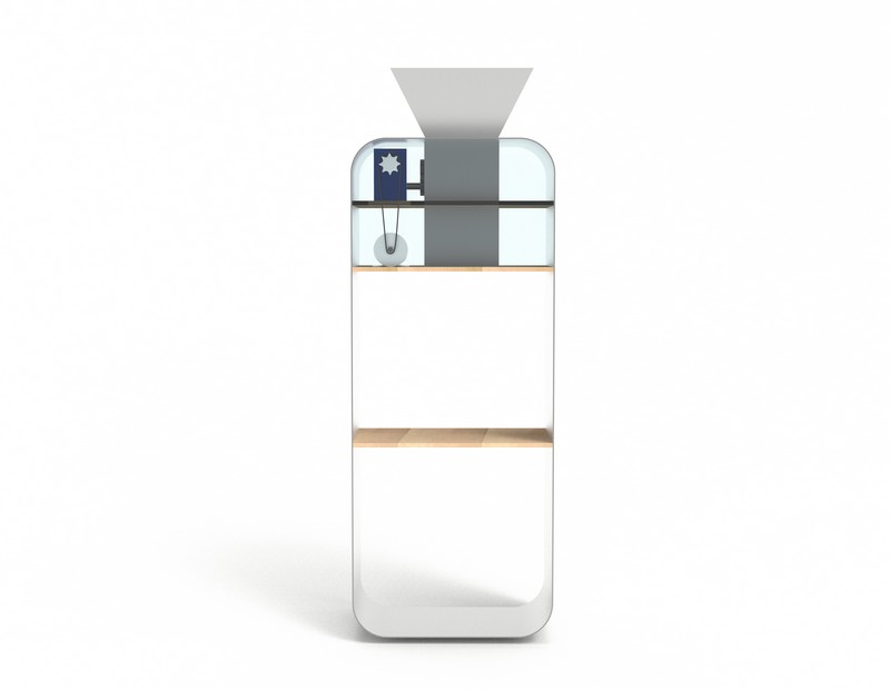 Ce concept se compose d’une charte graphique spécialement conçue pour les Fablabs. Une forme géométrique est attribuée à chaque famille de matériaux (un cercle vert pour les produits du bois etc.) qui seront fixés à leur boîte de tri respective.