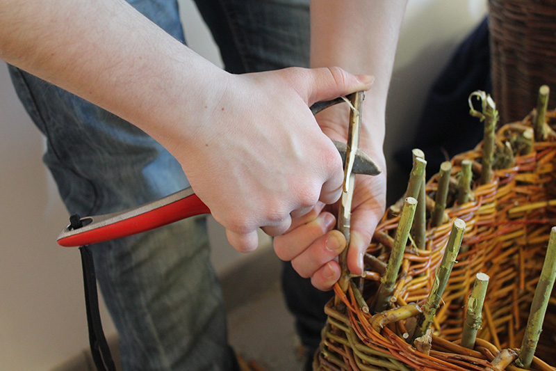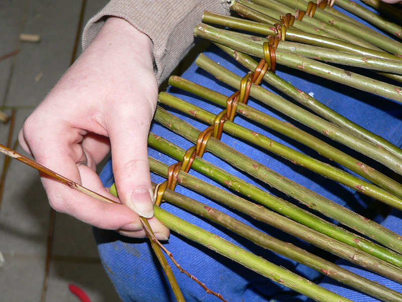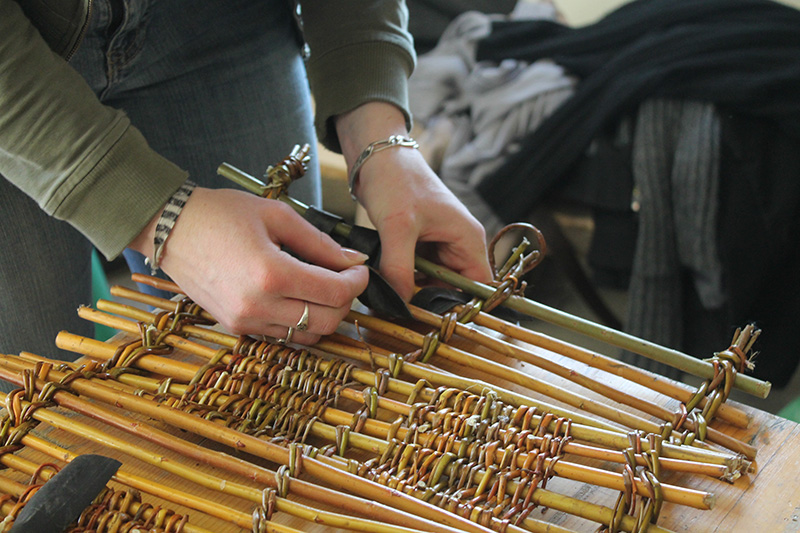 Après une initiation au travail de l'osier, des assises en osier destinées à servir aux enfants (3-7 ans) dans un centre d’accueil à la ferme ont été fabriquées en groupe avec Marine CAUGANT.