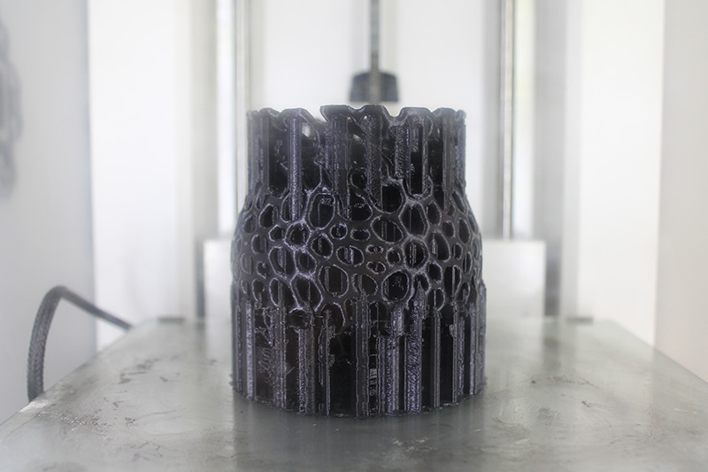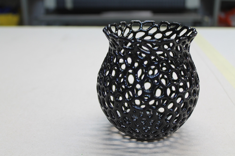 To smooth out the 3D printed surface, the sculpture got an acetone steam treatment.