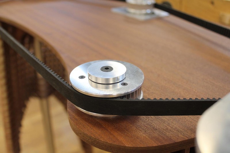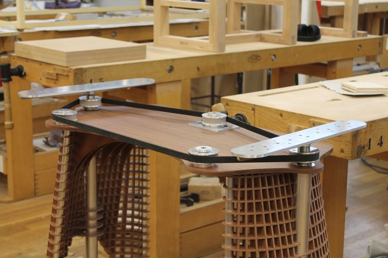 The user grips the belt and the pulls it to the left or the right to change the surface’s height without too much effort.