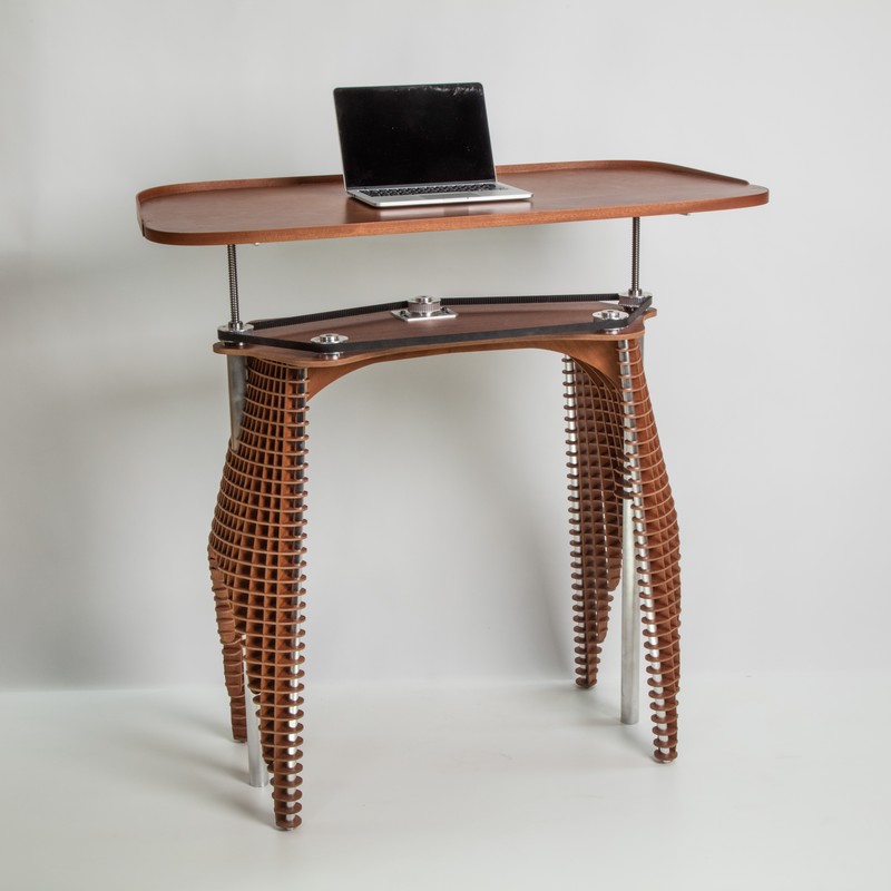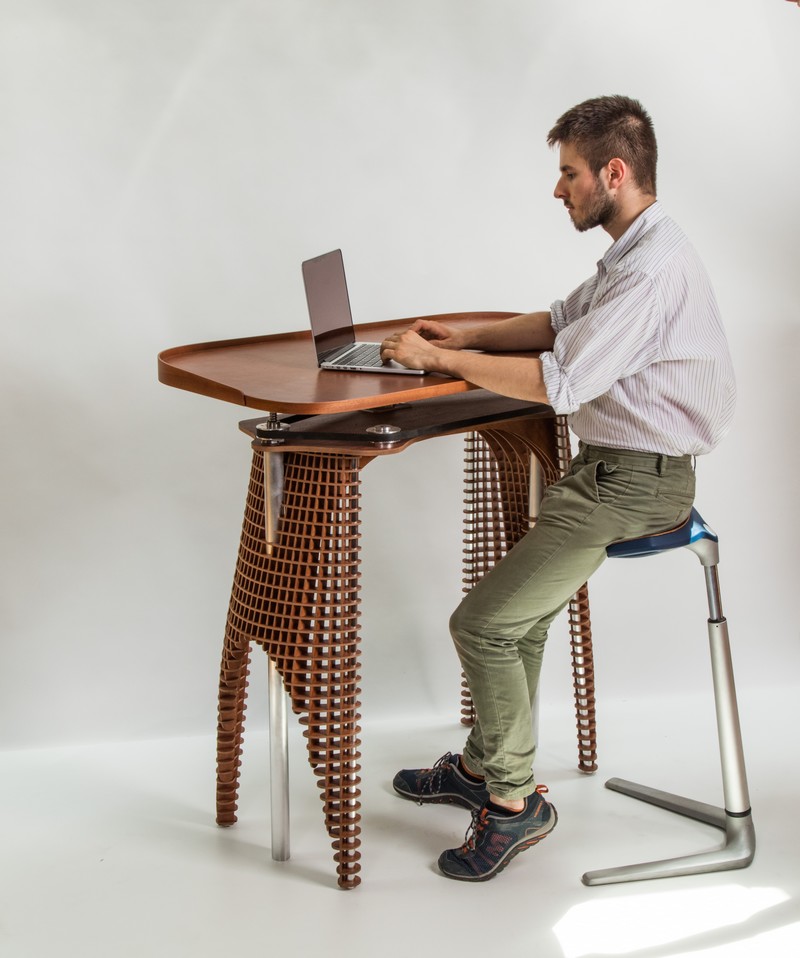 The desk "Voile au vent" was specially designed for a person working from home and who suffers from back problems.